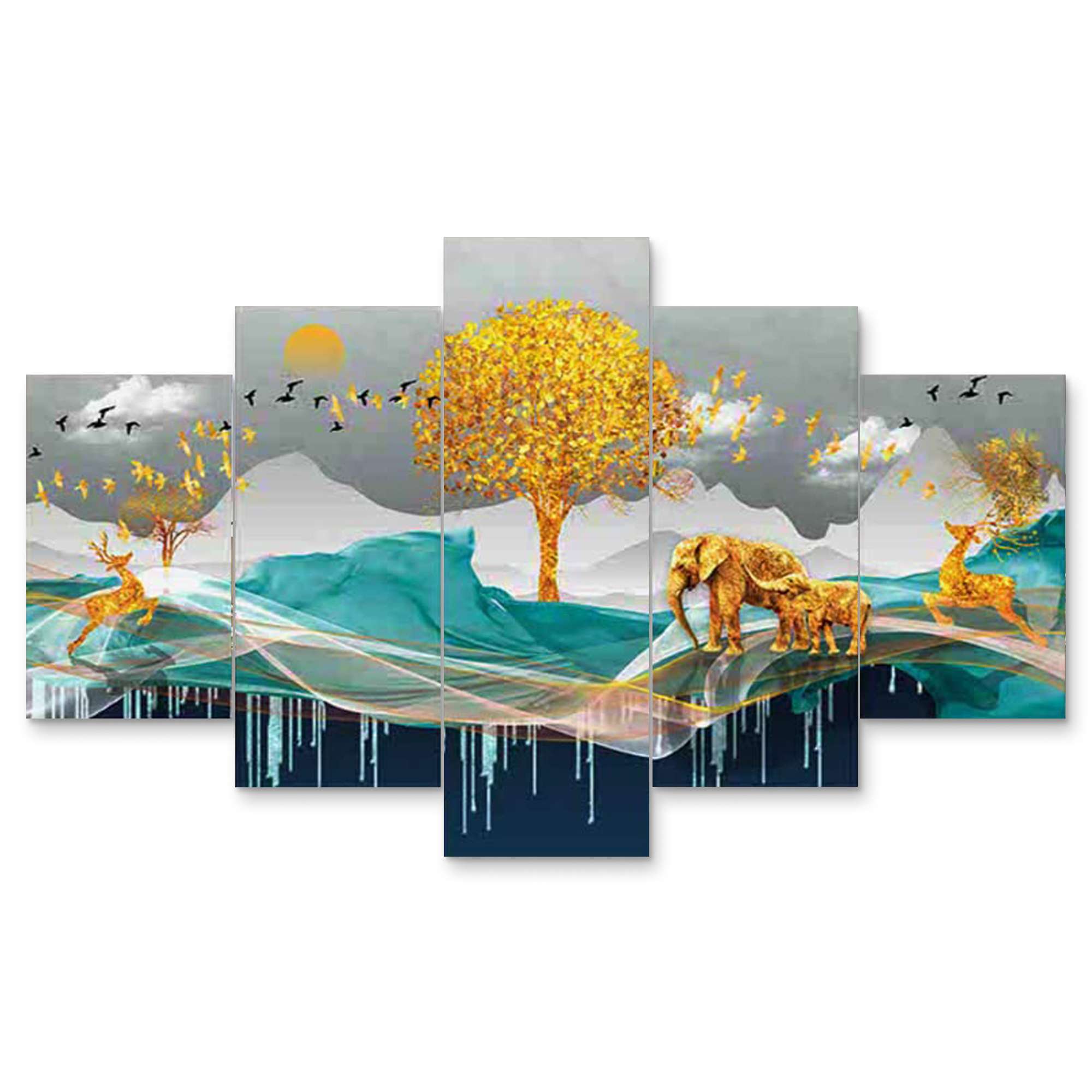 Elevate your home decor with the exquisite Set of Five 3D Framed Paintings. These captivating artworks are designed to bring a touch of elegance and sophistication to your living space. Ideal for home, living room, and bedroom decoration, this collection adds a vibrant and artistic flair to any room.Presents This Set Of 5 Amazing Paintings For Your Wall . The Painting Will Completely Change The Atmosphere Of The Room Whire It is Placed . The Paintimg Is Made On Heavy Wooden Board And Has A Digital UV Coating On It Which MAKES It Very Easy To Clean . Pricing Of The Product Is Made Very Reasonable From Our Brand As Per The Quality We Are Providing To Our Customers